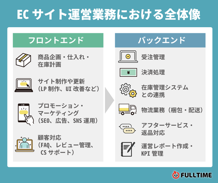 ECサイト運営業務における全体像|フロントエンド・バックエンドに分かれる